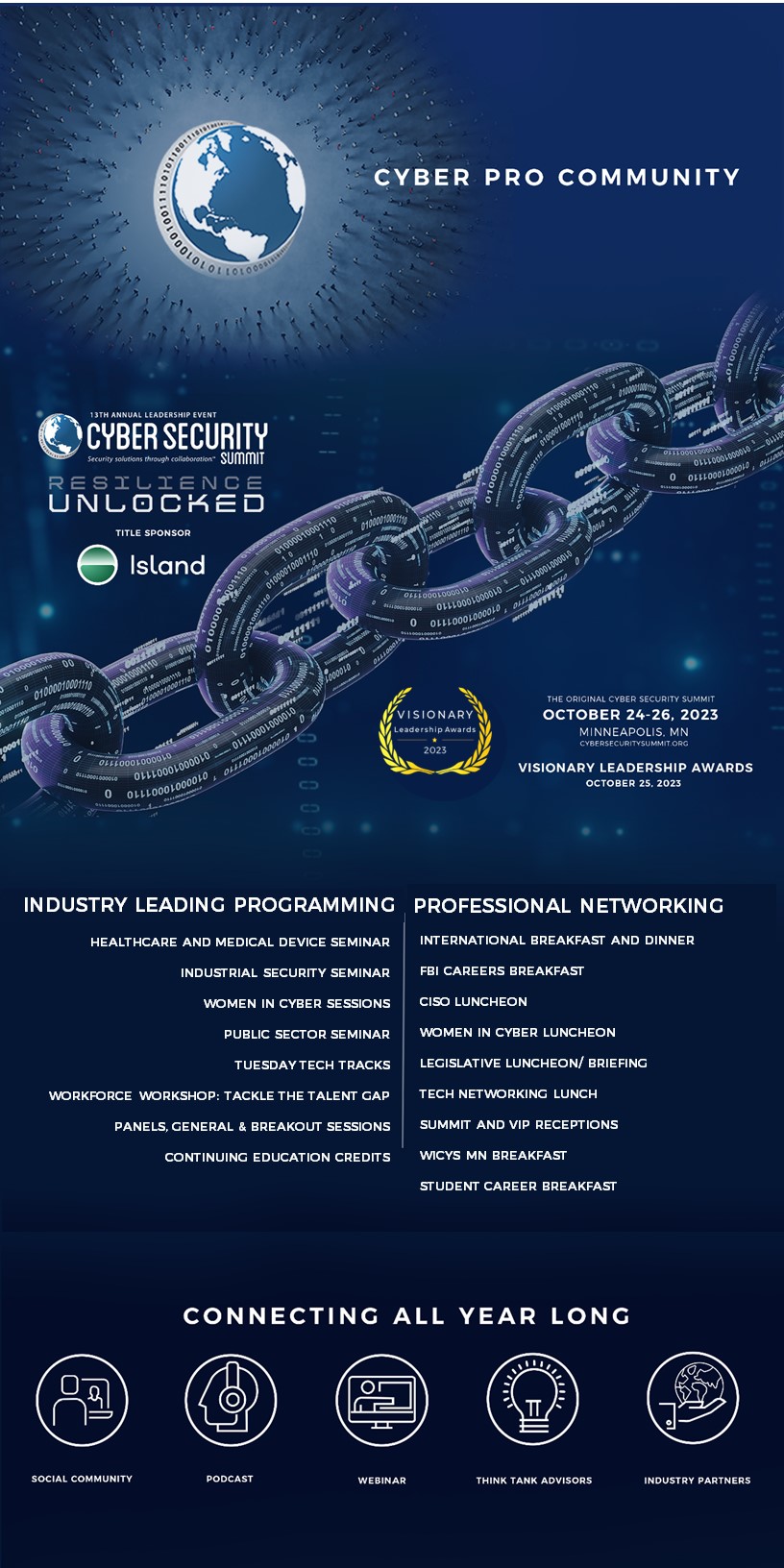 To bring together business, government, military and academic leaders to collaborate, troubleshoot, showcase and celebrate solutions for today’s critical cybersecurity challenges.