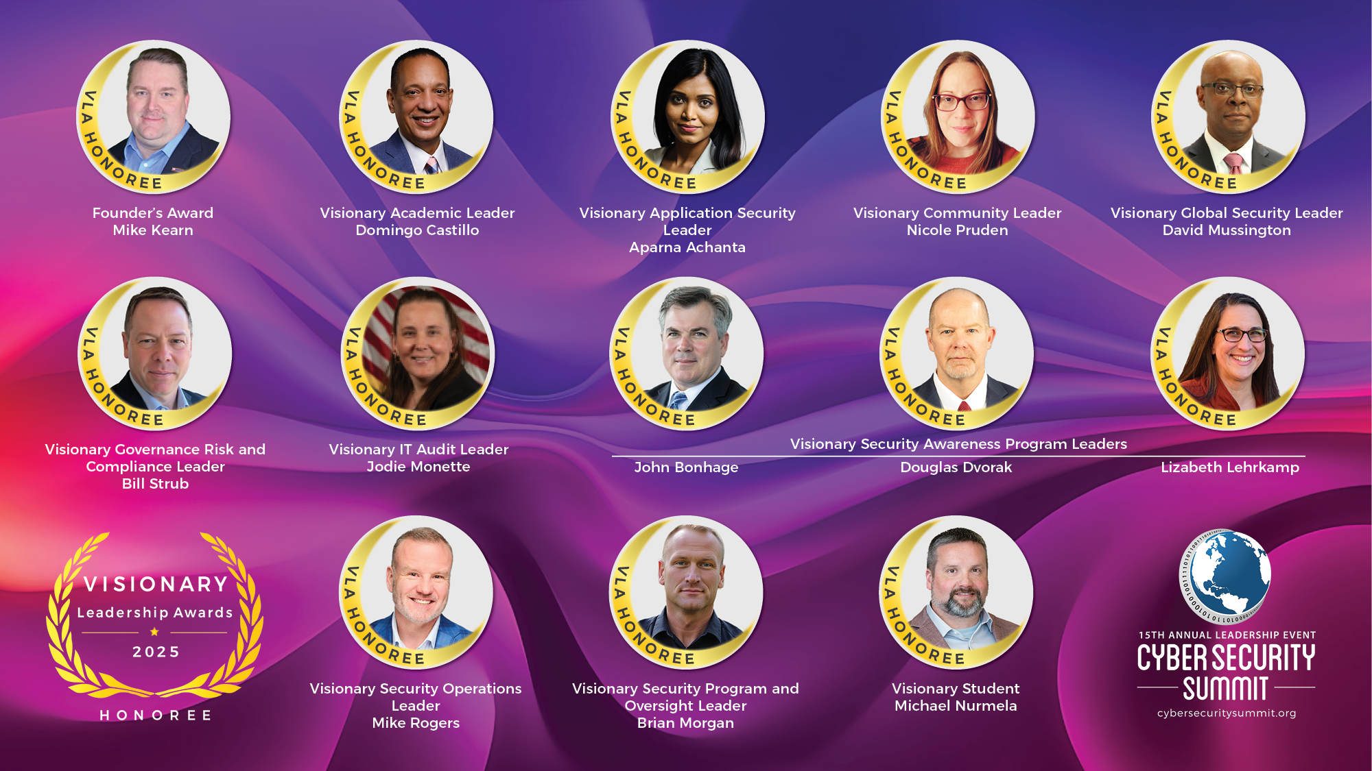 The 2025 Cyber Security Summit Visionary Leadership Awards recognize thirteen people behind the outstanding work that improves security and makes a difference. Nominated by peers and colleagues, the Visionary Leadership Award honorees will take the stage as we recognize and celebrate their Fearlessly Forward contributions. Meet the honorees at the 15th annual Cyber Security Summit at the October 21 reception immediately following the VLA presentation ceremony.