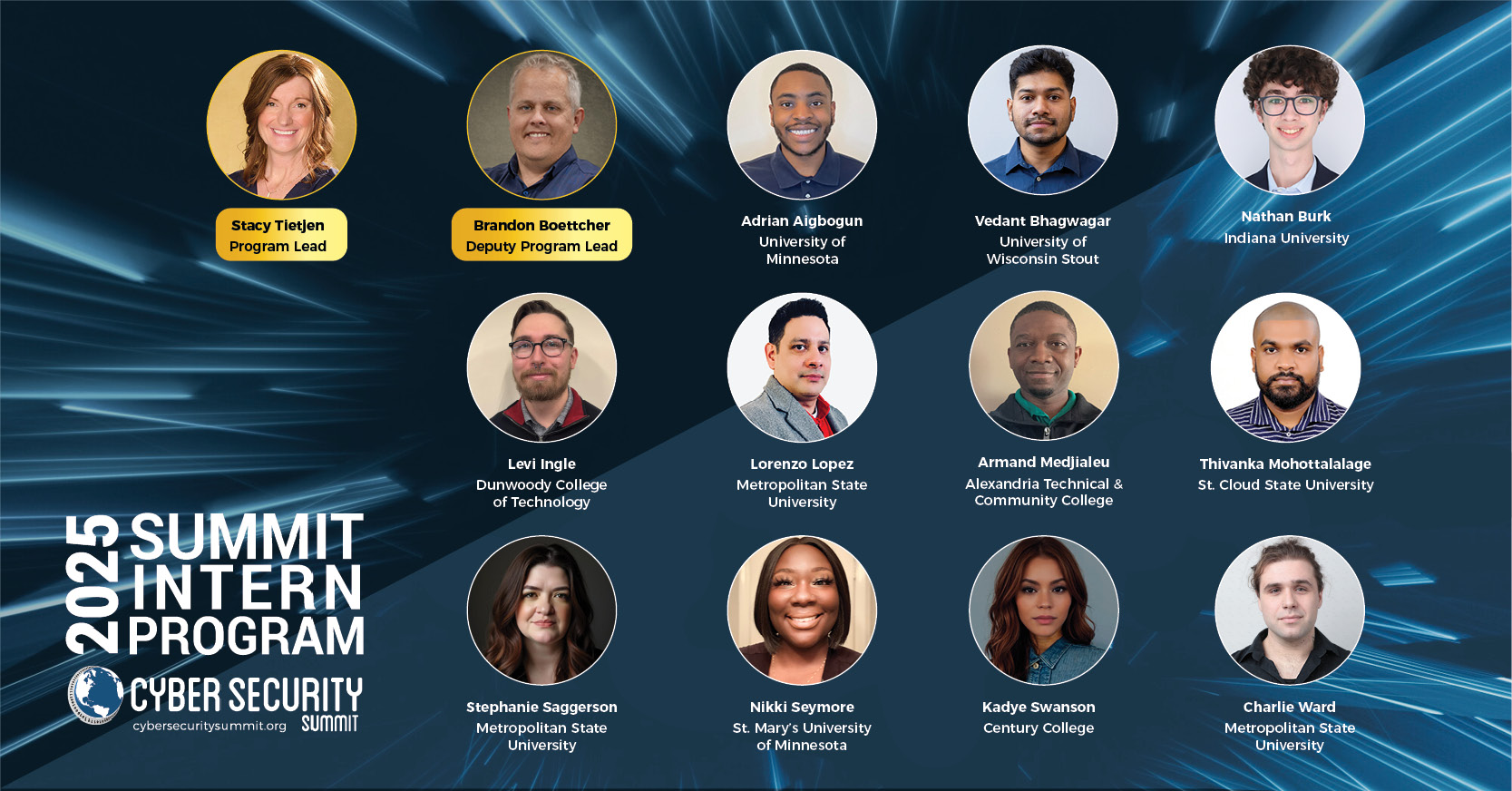 On behalf of Program Lead Stacy Tietjen and Deputy Program Lead Brandon Boettcher, welcome our 2025 Cyber Security Summit: Fearlessly Forward interns: